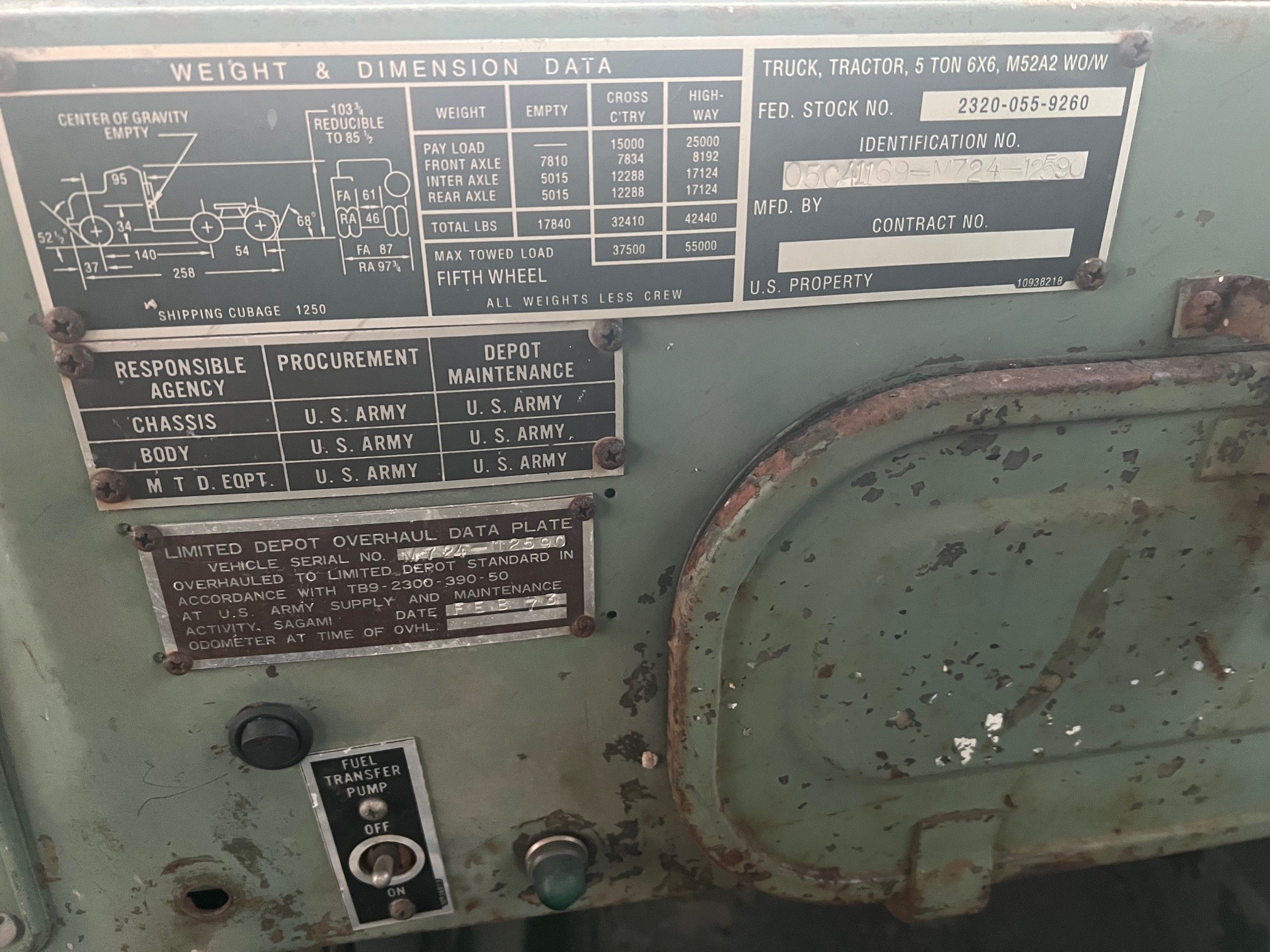 Technical Specifications: Model: M52A1 (Truck, Tractor, 5-Ton, 6×6)