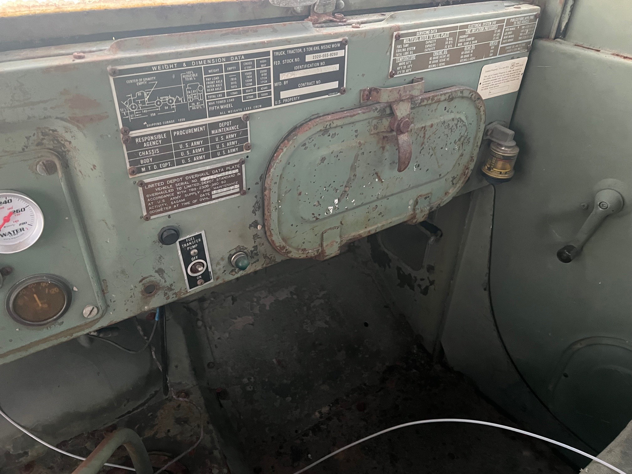 Selling a vintage 1970 M52A1 5-ton military tractor truck. The truck is complete but has a **blown motor**, making it an ideal candidate for a full restoration for parade and show use.