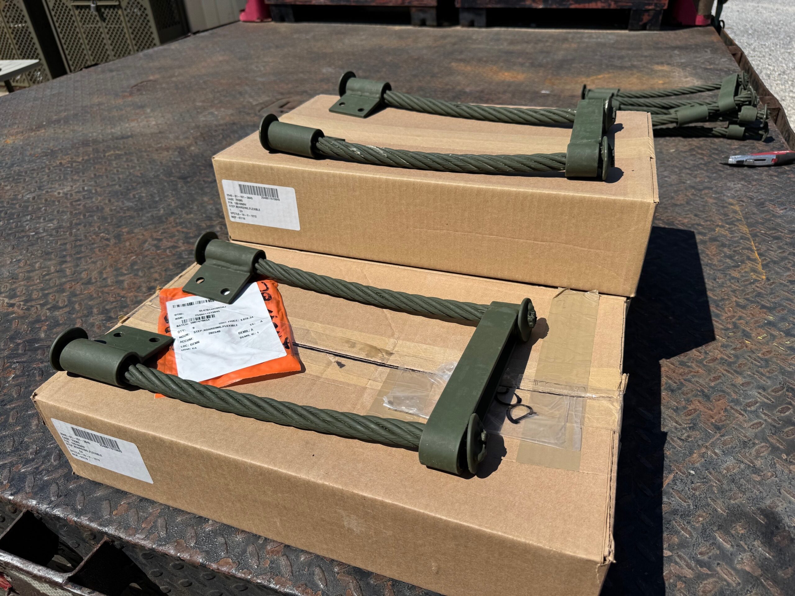 Heavy-duty, reinforced steel steps designed for 3-point vehicle entry system on military trucks