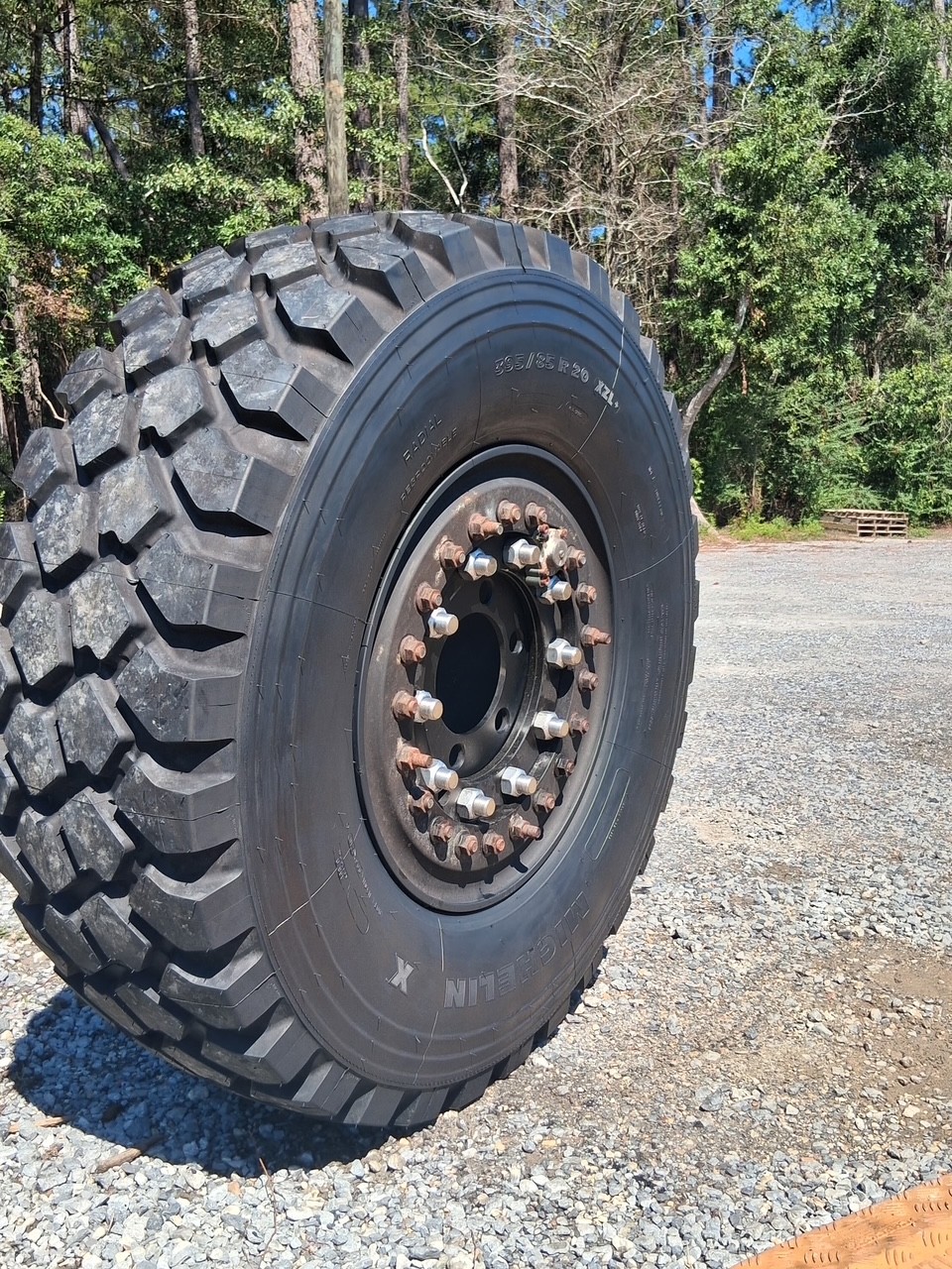 Michelin X 395/85R20 tires with adaptor plates for 2.5ton axel with DOT date codes of 2018, and stored in containers. $4500 for a set of 6.